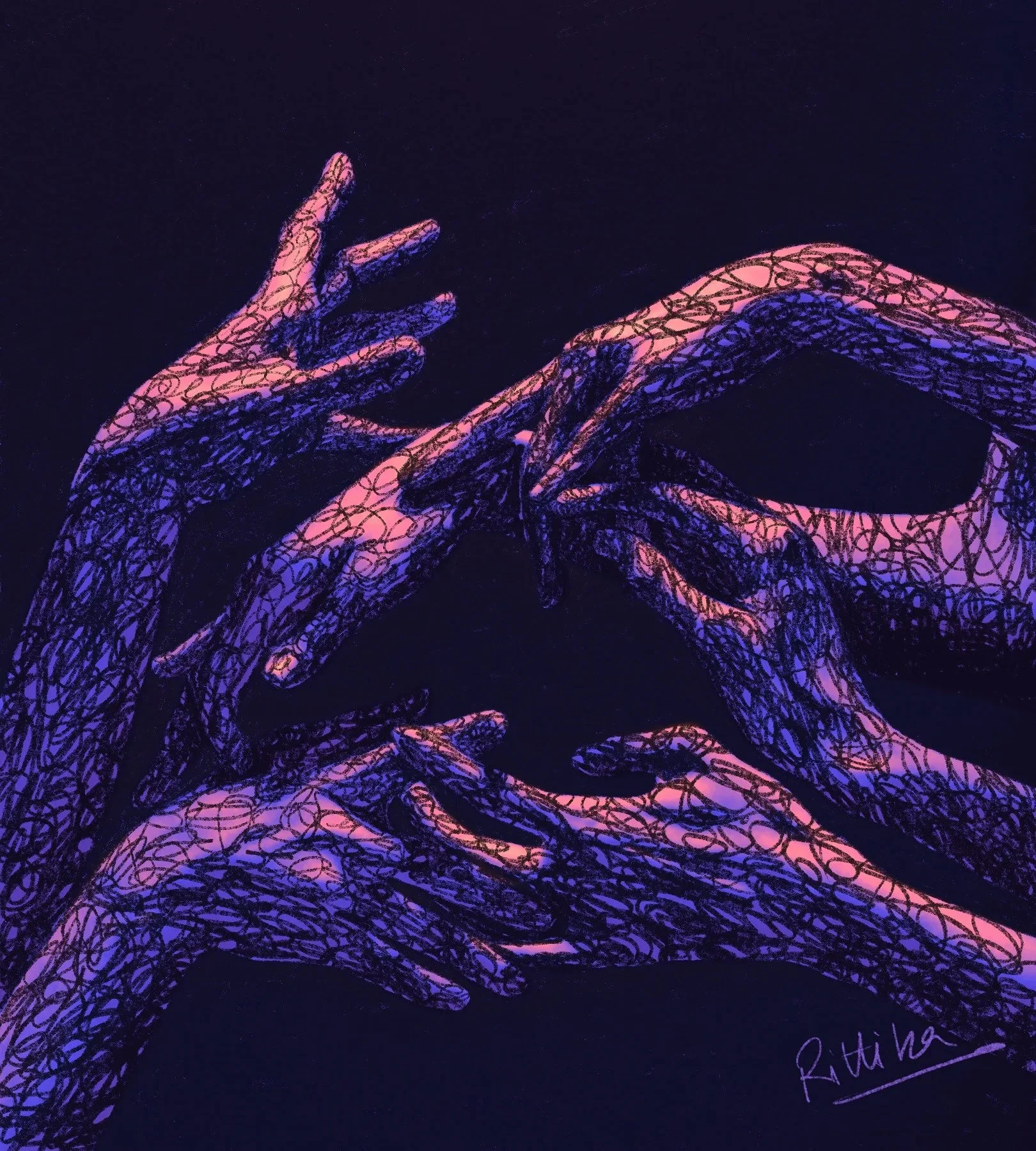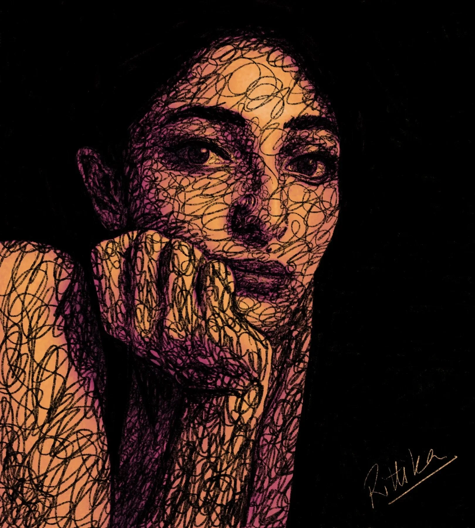 Most of my scribble art are made on procreate digitally except the first two which are micron pens and pencil colours on paper. (P.S. The artwork right below this text is a portrait of my mother)